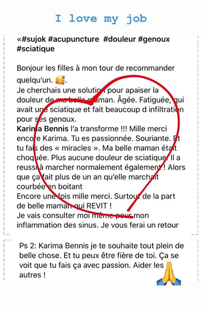 Je suis animée par la gratitude et la joie de contribuer à leur mieux-être, de les accompagner sur le chemin de la guérison, et de les voir retrouver le sourire
